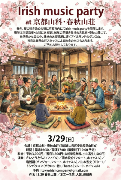 3/29 Irish music party at 京都山科・春秋山荘LIVEEVENT